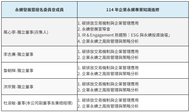 二、公司永續發展執行情形與成效之檢討、追蹤與修訂,並定期向董事會報告。